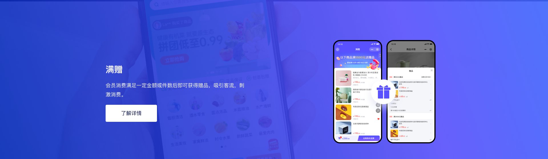 商家通过整合社群资源以及社群团购供应链,集中供货,减少中间环节,获取更多利润空间, 并通过社群裂变、口碑传播、限时购等营销方式为引流入口,沉淀私域流量,提升产品的转化与复购,助力商家销售业绩成倍增长 了解详情 >